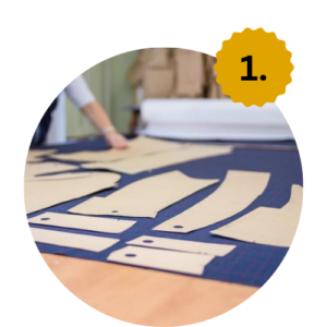 After sourcing, the fabric is cut into pieces based on the patterns. These pieces are then printed or embroidered according to our client's specifications.